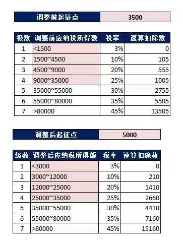 财税部门明确,对纳税人在2018年10月1日(含)后实际取得的工资、薪金所得,减除费用统一按照5000元/月执行。对个体工商户业主、个人独资企业和合伙企业自然人投资者、企事业单位承包承租经营者2018年第四季度取得的生产经营所得,减除费用按照5000元/月执行,前三季度减除费用按照3500元/月执行。